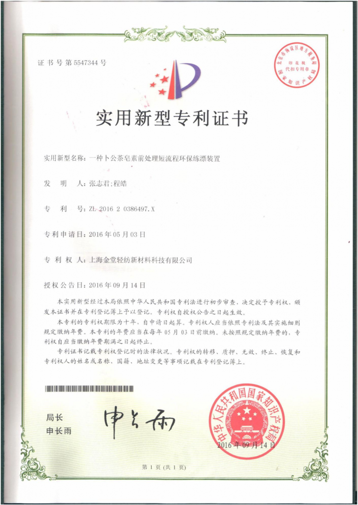 摘要:本實用新型公開了一種卜公茶皂素前處理短流程環(huán)保練漂裝置,包括煮練機、軋輥裝置、水洗機和汽蒸機,煮練機內設有第一濃度傳感器和浸軋托輥,煮練機底部設有波輪,波輪與電機傳動連接,煮練機上端與試劑箱接通;軋輥裝置位于煮練機右側,軋輥裝置下端與過濾裝置連接,過濾裝置右側設有排污口,過濾裝置下端與煮練機管道連接,連接管道中設有單向閥;水洗機位于軋輥裝置右側,水洗機上端設有補水管,水洗機內設有第二濃度傳感器,水洗機下端與回液管連接;汽蒸機位于水洗機右側,汽蒸機與蒸汽管連接。本實用新型結構簡單,自動化程度高;摒除化學助劑,練漂快速高效,環(huán)保無公害;廢水可重復利用,節(jié)能減排,值得大力推廣。