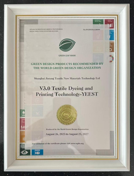 ? ? ?近日,公司憑借其前瞻性的綠色創新實踐,成功獲得世界綠色設計組織(WGDO)推薦的“綠葉標”認證,成為全球紡織印染行業首家獲此殊榮的企業。這不僅填補了行業在國際綠色設計認證領域的空白,更以中國智造的實力,為全球紡織業的可持續發展注入新動能。