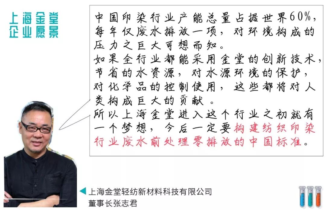 ? ? ? 上海金堂輕紡新材料科技有限公司董事長張志君表示:“如果全行業廣泛采用該項技術,預計可節約用水45億噸水,滿足2個上海市城市居民一年用水量。