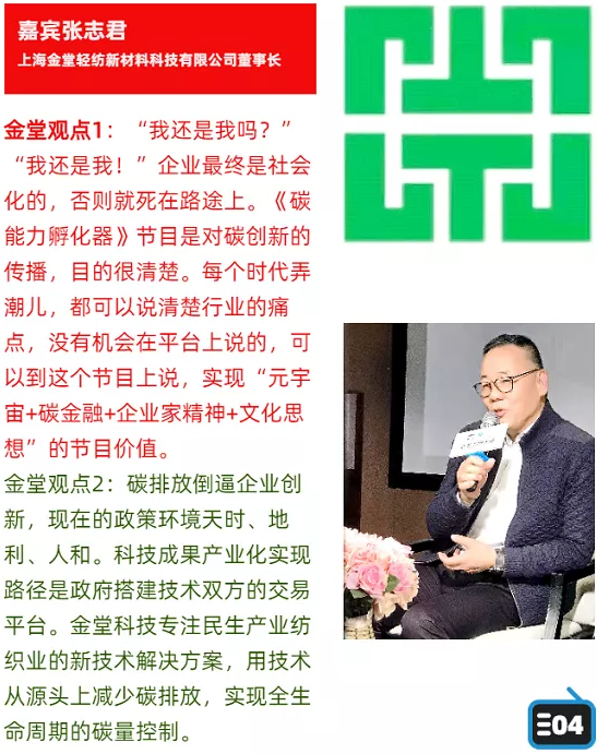? ? ? 日前,上海金堂董事長張志君在做客榮庫科創(chuàng)教育島《碳能力孵化器》話題直播時表示,今年對于上海金堂這樣專注民生產(chǎn)業(yè)紡織業(yè)新技術(shù)解決方案,用技術(shù)從源頭上減少碳排放,實現(xiàn)全生命周期碳量控制的科技創(chuàng)新企業(yè)來說,注定會迎來一個希望之春。